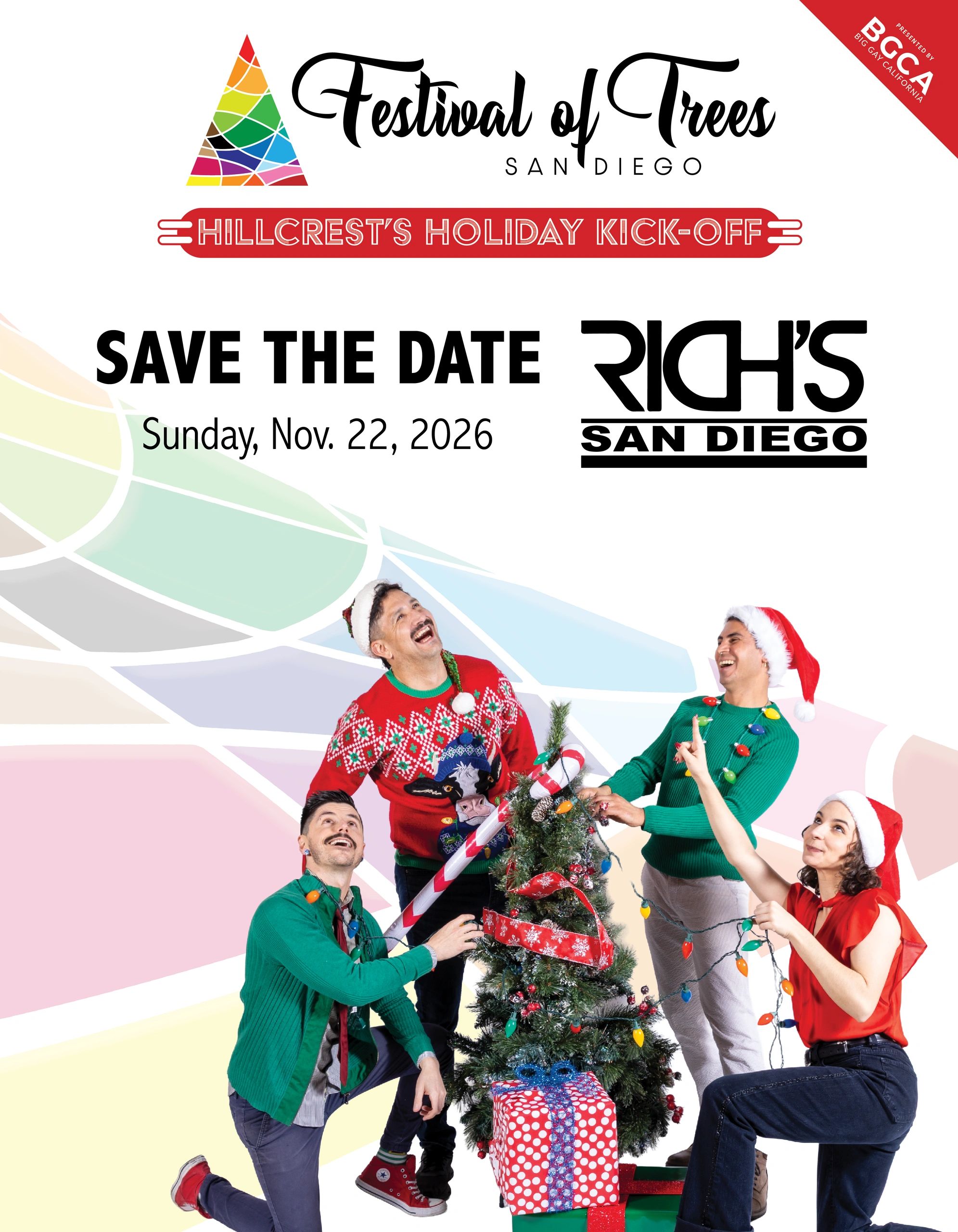 Festival of Trees is the premiere holiday kick-off event for the San Diego LGBTQ+ and allied communities, sponsored by BGCA/Big Gay California (501c-3 non-profit). The event features expertly decorated and designed holiday trees, a silent auction, and much more!